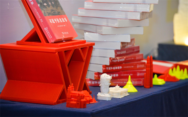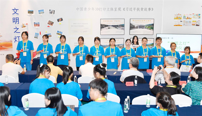 活动现场有4幅由同学们设计的《习近平扶贫故事》的3D打印浮雕,分别是《伟大征程上的伟大转折》、《绿水青山就是金山银山》、《地球褶皱里的“中国奇迹”》和《“悬崖村”上架天梯》。据悉,这种由先进3D打印技术做支撑,由中小学生用科技力量立体呈现《习近平扶贫故事》中与东盟及“一带一路”国家具有相似、相近性的扶贫故事的尝试,得到了《习近平扶贫故事》出版方商务印书馆的大力支持。商务印书馆党委书记、执行董事顾青在视频致辞里提到:“中国扶贫所取得的宝贵经验,对于世界上其他仍在与贫困抗争的国家与人民,具有重要的借鉴意义。我们期待在‘文明之灯’的照耀下,东盟和‘一带一路’沿线国家更多的读者,能够读到这本书并从中获益,在探索适合自身的发展之路时得到启发。”