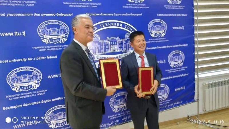 签约仪式在塔吉克斯坦技术大学电教室举行。此次签约,共汇聚5个领域的合作,包括共建“一带一路智能制造创新实验室”、“中塔青少年3D考古社”、“一带一路人工智能启蒙塔吉克斯坦实践基地”、“一带一路科学教育研究中心”以及共同进行《文明的相望——3D打印一带一路》大型丛书的编撰等。塔吉克斯坦技术大学副校长玛玛达莫伊﹒阿布杜罗耶夫先生主持仪式。